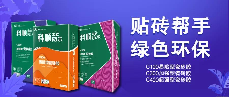 为了解决水泥砂浆贴砖出现空鼓掉砖、室内装修污染等难题,市面上出现了高粘结力、科技环保的瓷砖胶。而科顺家庭防水通过技术创新打造出高环保性能的瓷砖胶系列产品,推出了易贴型瓷砖胶C100、加强型瓷砖胶C300、超强型瓷砖胶C400等新一代环保型瓷砖胶产品。