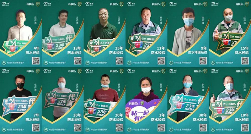 近日,科顺家庭防水举行“51劳动晒出来 向防水师傅致敬”活动圆满结束。线上线下新模式结合推动,同时举行进店抽千元大奖以及线上公众号福利活动,吸引超万人参与,掀起全国“晒劳动”热潮!