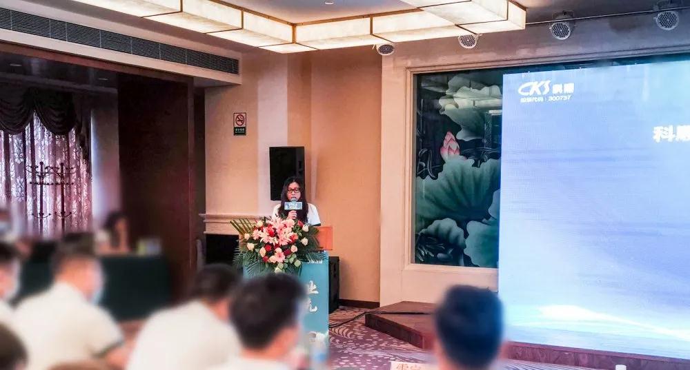 会议伊始,科顺股份总裁方勇(以下简称方总)亲自写信道贺,由总裁办主任余婉青代为致辞。方总表示:疫情下,零售业务受到巨大挑战,于业务同事不容易。在此情况下,民建集团上半年仍取得不错的增长,特此感谢祝贺。
