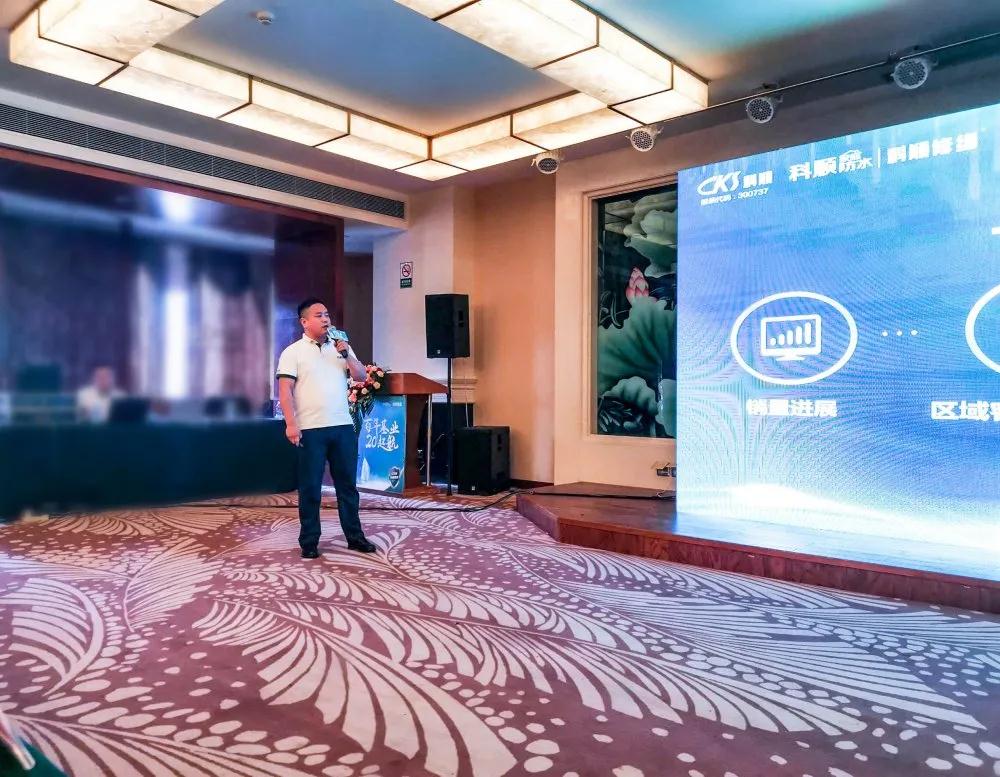 科顺家庭防水市场总监雷定录、财务部经理卢嘉苑及各大区域总监相继做上半年市场问题总结及下半年市场规划分享。