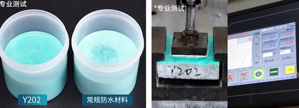 对比常规防水材料呈现冰渣状且分层,防水性能失效,全优Y202抗冻不变质,解冻后依旧顺滑无渣,1.6Mpa粘结强度不变,有效减少仓储保温压力,提升施工质量。