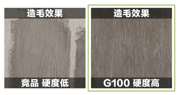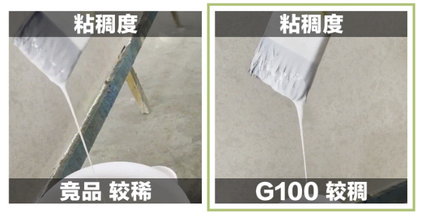 对比竞品,G100、G101加固剂配方更粘稠,施工手感更佳。