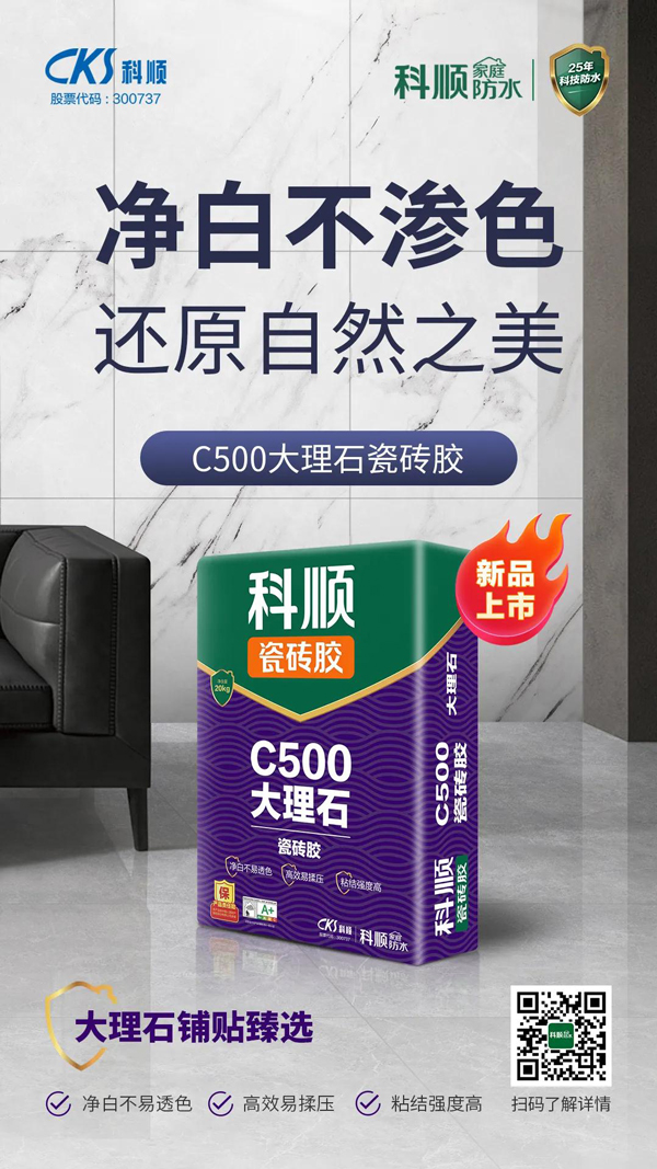 科顺家庭防水C500大理石瓷砖胶采用优质净白配方,特别适用于大理石、花岗岩等天然石材,产品具有净白不易透色的特点,还原石材天然质感。