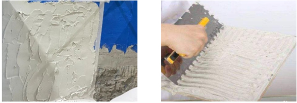 1. 瓷砖胶刮抹于基面后,必须在表干前完成瓷砖的粘贴,胶层未表干的判断依据以手触粘手为准;