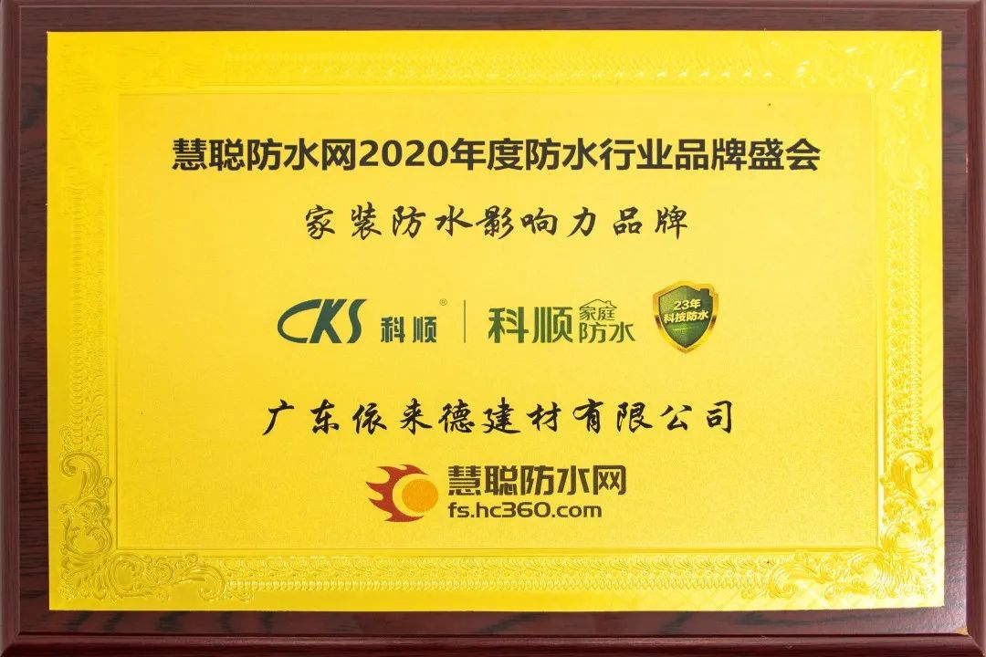 蝉联影响力大奖,是业界与消费者对科顺家庭防水品牌影响力、技术实力、产品品质的高度认可。