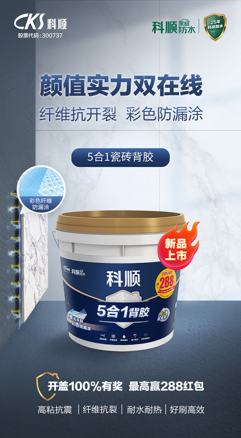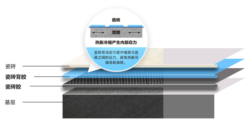 5合1瓷砖背胶可缓冲墙面与瓷砖之间的应力,避免热胀冷缩导致掉砖。
