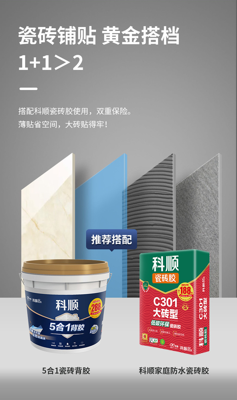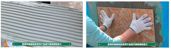 搭配科顺瓷砖胶使用,双重保险。薄贴省空间,大砖贴得牢!