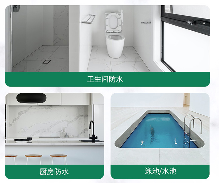 用于厨房、卫生间等室内瓷砖表面防水修复。