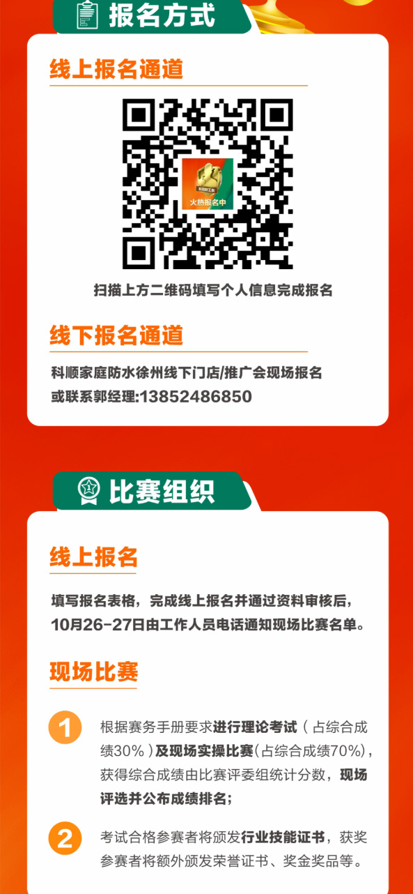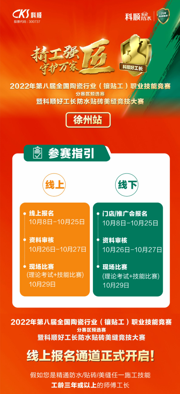 【参赛有奖】科顺好工长防水贴砖美缝竞技大赛(徐州站)等你来报名!