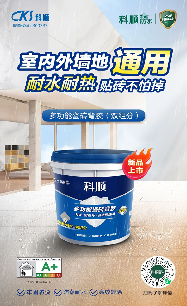 后台对双组分背胶的呼声也很高,今天,科顺家庭防水多功能瓷砖背胶(双组分)来了!