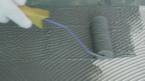 用滚筒或刷子将背胶均匀涂刷到瓷砖背面;