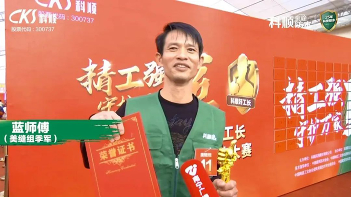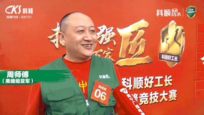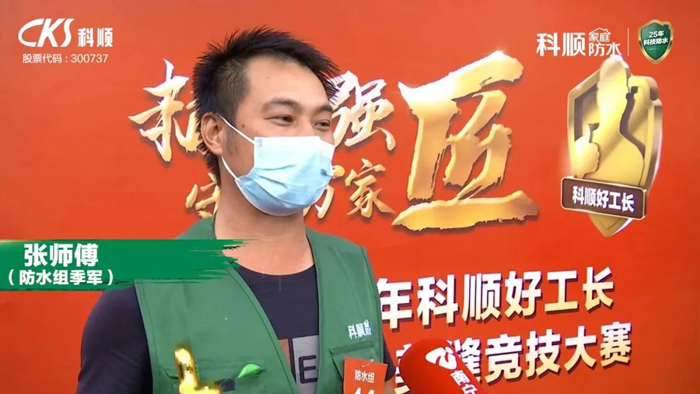 “感谢科顺家庭防水为我们提供展现技术的舞台,让消费者们领略到工匠风采!”提到科顺家庭防水的瓷