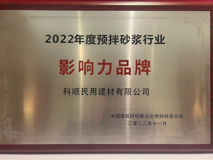 行业专家的评议及行业监督评定,科顺民建集团蝉联“预拌砂浆行业影响力品牌”,