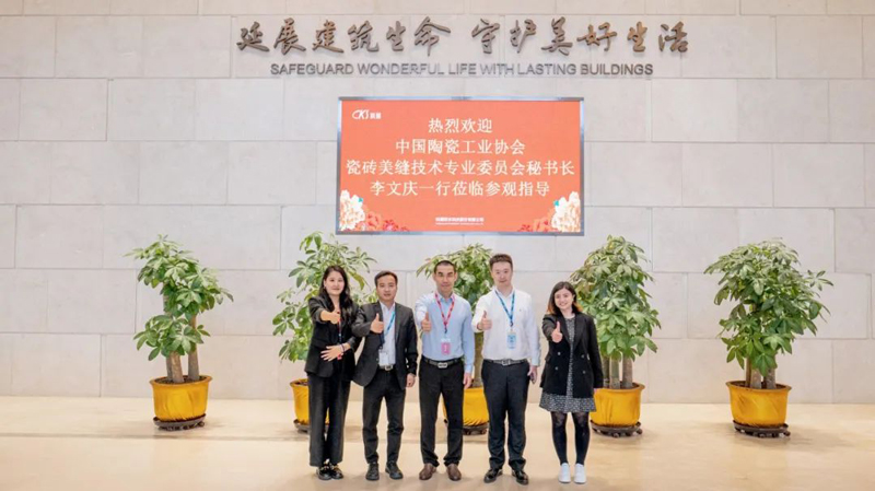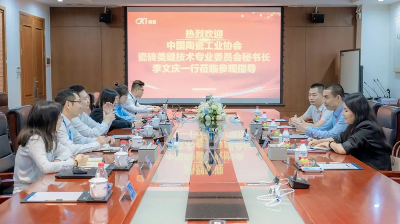 2023年4月19日,中国陶瓷工业协会瓷砖美缝技术专业委员会(以下简称“美缝专委会”)秘书长李文庆一行莅临科顺总部参观,受到了科顺民用建材集团(以下简称“科顺民建集团”)总裁徐汝意、战略客户部总经理梁强雄、市场部总监邓莉的热情接待。