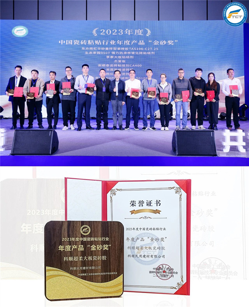 近日,由中国陶瓷工业协会瓷砖粘贴技术专业委员会(TCT)主办的2023中国瓷砖粘贴行业年度技术交流会议在佛山成功举办。科顺股份及科顺建材斩获多项大奖,倍受瞩目。