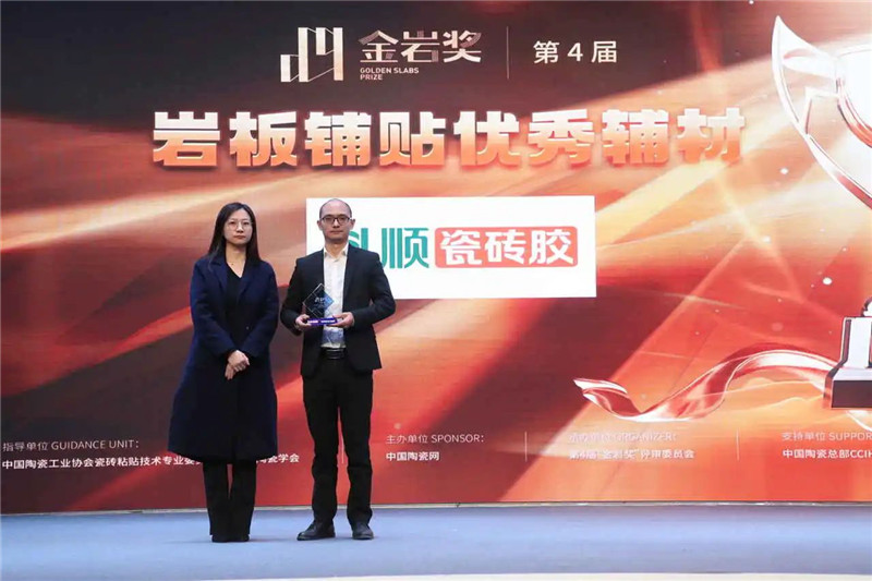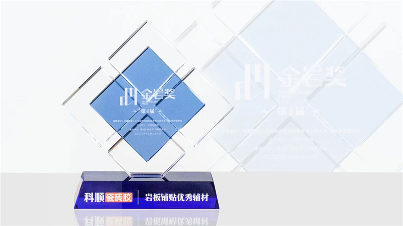 颁奖盛典上,科顺瓷砖胶获得专业的肯定与认可,斩获“岩板铺贴优秀辅材”殊荣。