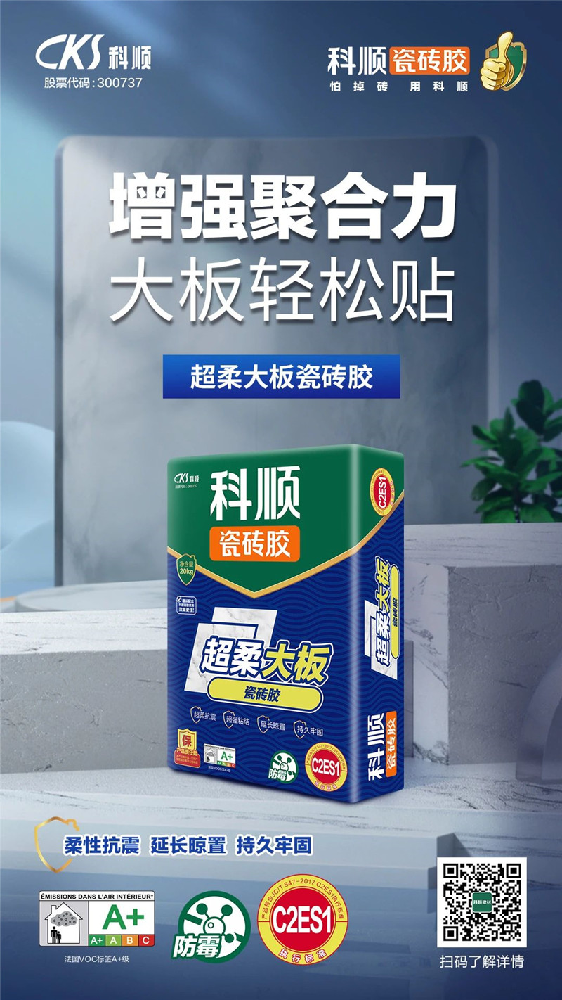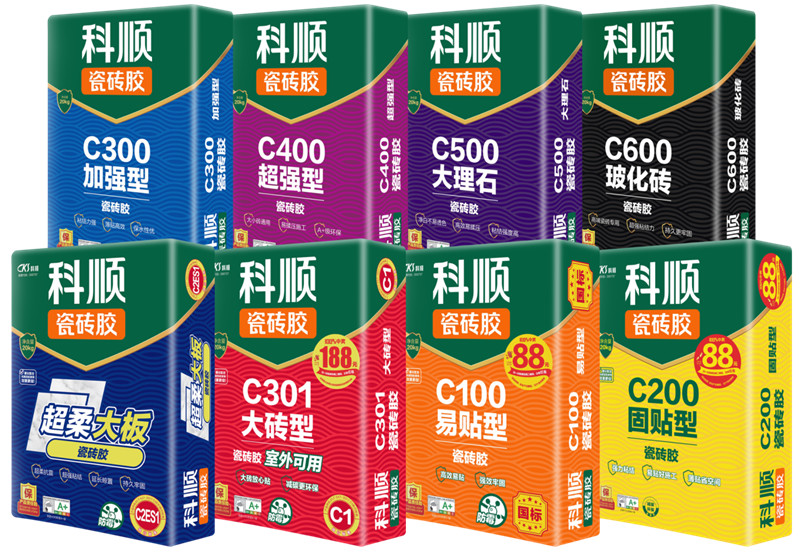 荣誉背后是坚持不懈的产品精进和创新,科顺瓷砖胶立足市场需求和行业发展趋势,先后打造出C100易贴型瓷砖胶、C301大砖型瓷砖胶、超柔大板瓷砖胶等多款爆款产品。