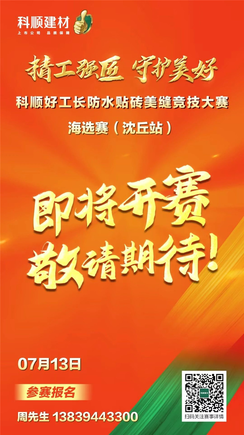 随着盛夏来临,“精工强匠 守护美好”2024年科顺好工长竞技大赛·全国海选赛的热情持续高涨。7月13日,大赛的烽火将传至河南沈丘,又一场技艺的较量即将上演。让我们共同期待,更多像唐攀一样的优秀师傅工长在大赛舞台绽放光彩!