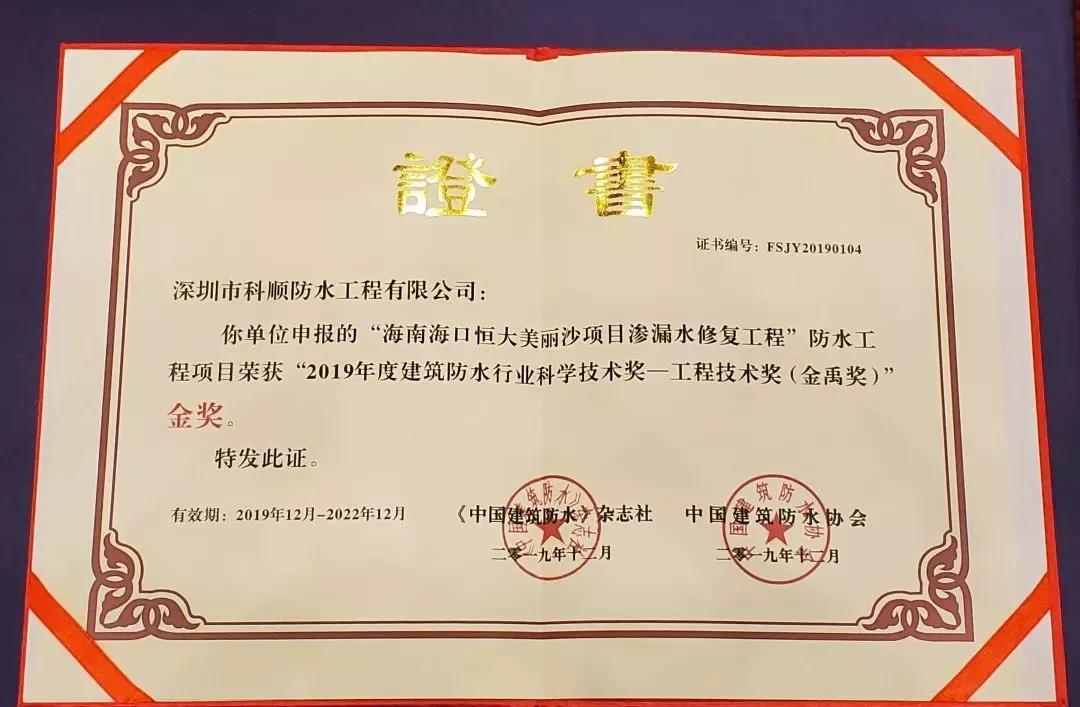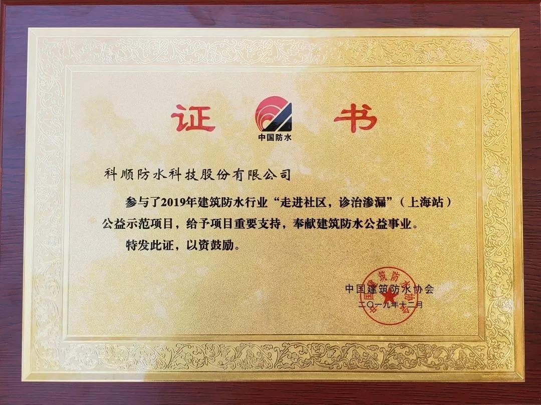 本次会议中,科顺股份获得金禹奖金奖、银奖,2019年度建筑防水行业科学技术奖,“走进社区 诊治渗漏”公益奖,先进会员企业奖,职业技能大赛优胜奖等多项表彰,展现了科顺股份在研发及应用技术、系统服务、履行会员及社会责任等多方面的领先优势。作为防水行业的佼佼者,科顺股份始终坚持“技术科顺、诚信科顺、服务科顺”的理念,不断强化技术优势,提升系统服务能力。2018年,科顺股份顺利A股上市,以自身优势资源为基础,借助资本翅膀,科顺股份获得更快速的发展。建立企业院士工作站、成立联合实验室扩大研发优势,设立全新子公司进一步扩大业务范围及服务能力,全国生产布局提升产能供应能力,这些举措,都让科顺企业实力及影响力获得进一步提升。在保持企业稳健、快速发展的同时,科顺股份积极践行社会责任,践行国家精准扶贫,响应协会“走进社区 诊治渗漏”公益活动,为社会和谐发展贡献力量。