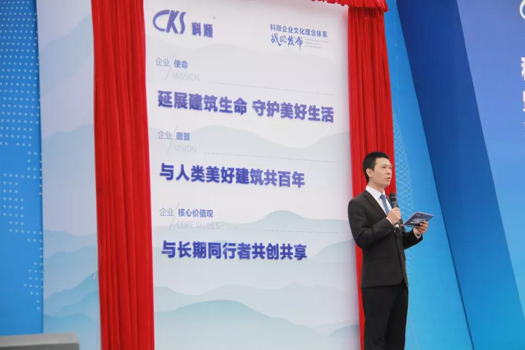 科顺股份总裁方勇发布了科顺股份企业文化理念体系的主体内容。“延展建筑生命 守护美好生活”是科顺的企业使命,表达了科顺的产品和服务所提供的基本价值,体现了科顺以领先者的姿态所表现出的格局与担当;“与人类美好建筑共百年”是科顺的企业愿景,传递了科顺高质量的价值定位及对于可持续发展的不懈追求,科顺致力于与同样追求至臻至善的伙伴合作,服务于高品质、标志性、有影响力的建筑,以期成为与美好建筑相伴共生的百年企业;“与长期同行者共创共享”是科顺的价值观,科顺追求长期发展,期待与同样具有长期发展追求的伙伴们建立信任、稳定的关系,与利益相关者共同前行,共赢共享!