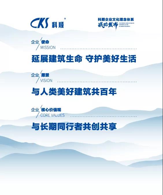 多年来,科顺股份始终秉承可持续发展理念,坚持以客户为中心,与利益相关者和谐共进,构筑高品质建筑。本次发布会更加明晰了科顺股份企业文化理念,以更专业、开放的姿态,向世界展示昂扬前行的科顺,树立更清晰与正向的品牌形象。未来,科顺股份将使企业文化贯透到企业组织结构的各个层面,贯穿到研发、生产、应用等各个环节中,致力于为科顺合作伙伴提供极致的产品与服务,为“守护美好生活”的愿景不懈奋斗!