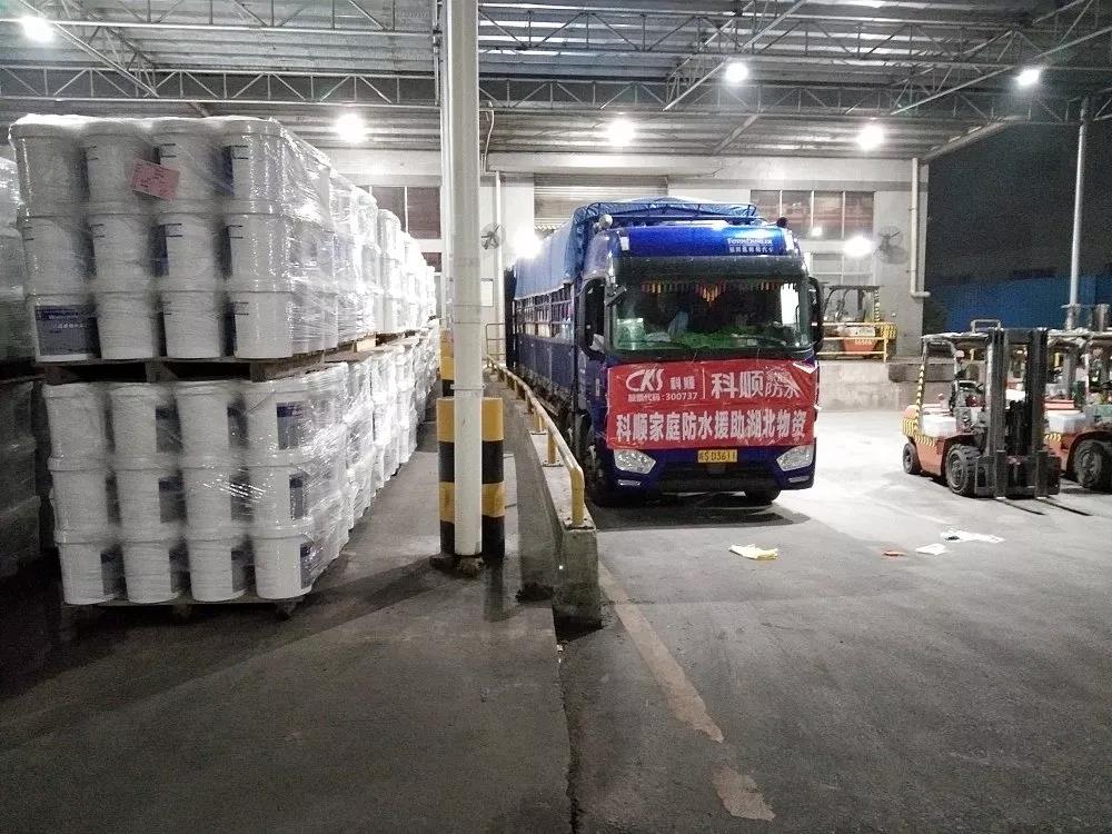 时间回到24小时前,11日晚。科顺家庭防水收到召令后马上组织内部人员,包括仓管组、商务部、市场部,组成支援小组。清点物资、装载运输,一切紧张而有序地进行。