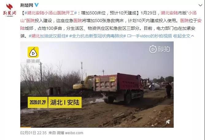 据悉,此次建设于湖北孝感安陆市普爱医院护国院区,被称为安陆版“小汤山医院”,将分两期建成,第一期预计2月15号完工,随后接收新冠肺炎确诊患者,第二期预计2月20号完工。