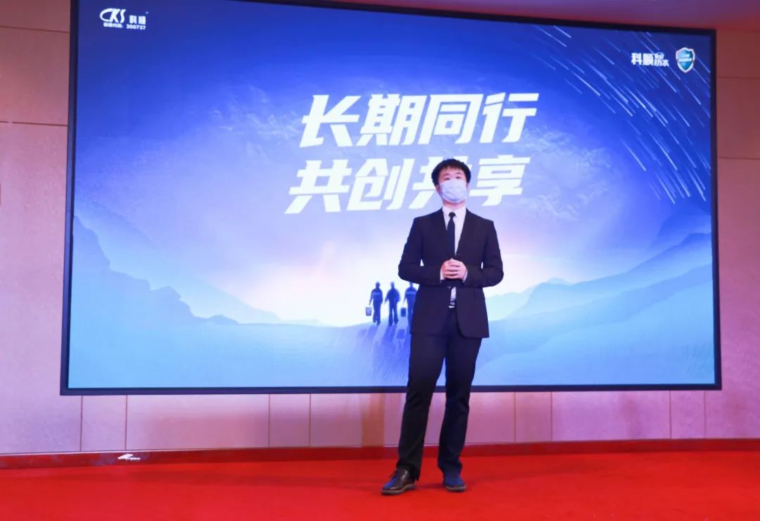 大会伊始,科顺股份董事长陈伟忠先生(以下称陈董)提到疫情对于集团的影响十分有限,相信防水行业在疫情过后会得到填补,甚至后续需求会更多。其二,整个集团对民建集团将一如既往地支持,实现科顺品牌影响力再次腾飞的“第二曲线”。陈董强调,秉承“与长期同行者共创共享”的价值观,与伙伴们彼此信任、相互认同,才能成为志同道合的长期同行者,一起携手共赢!