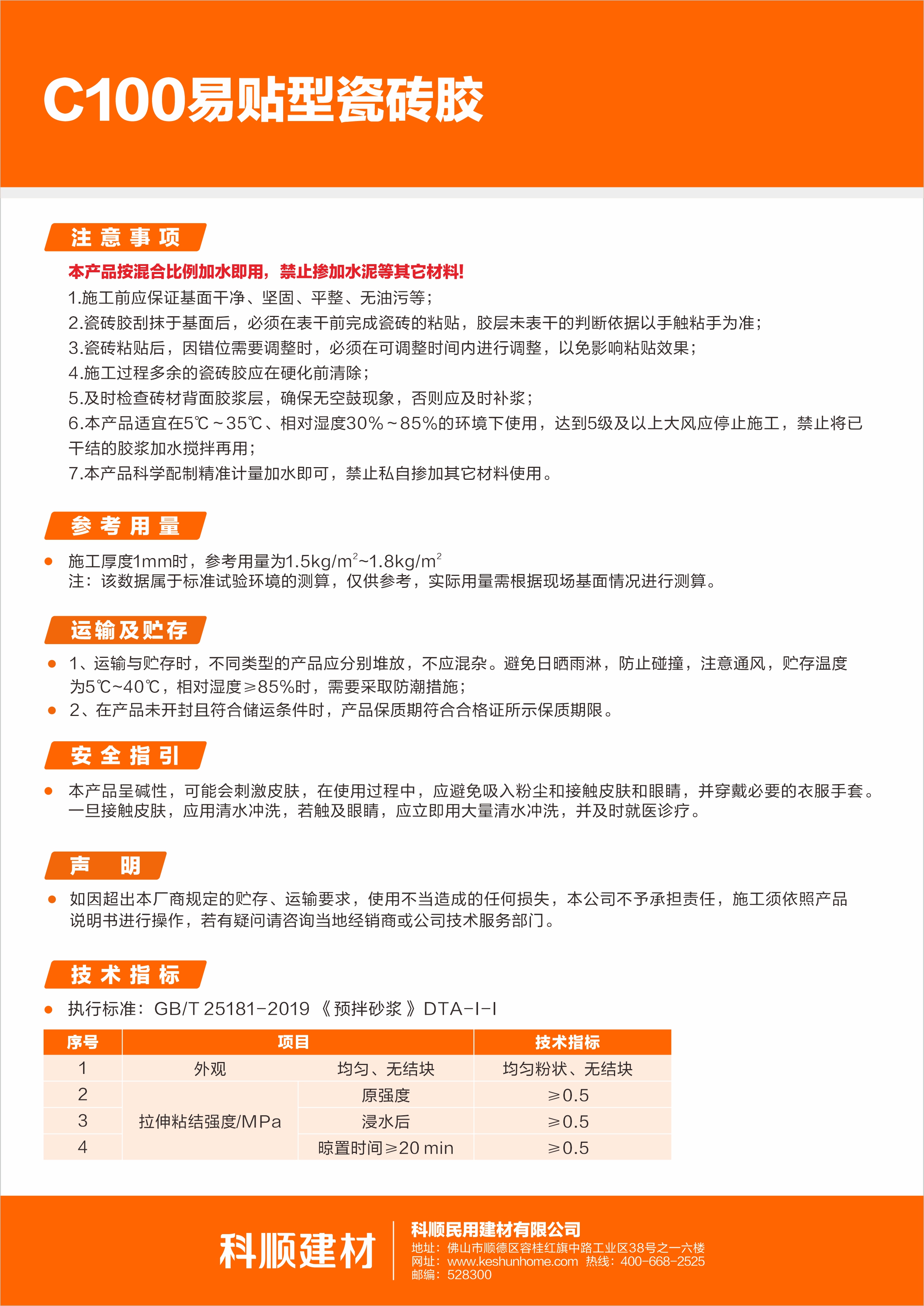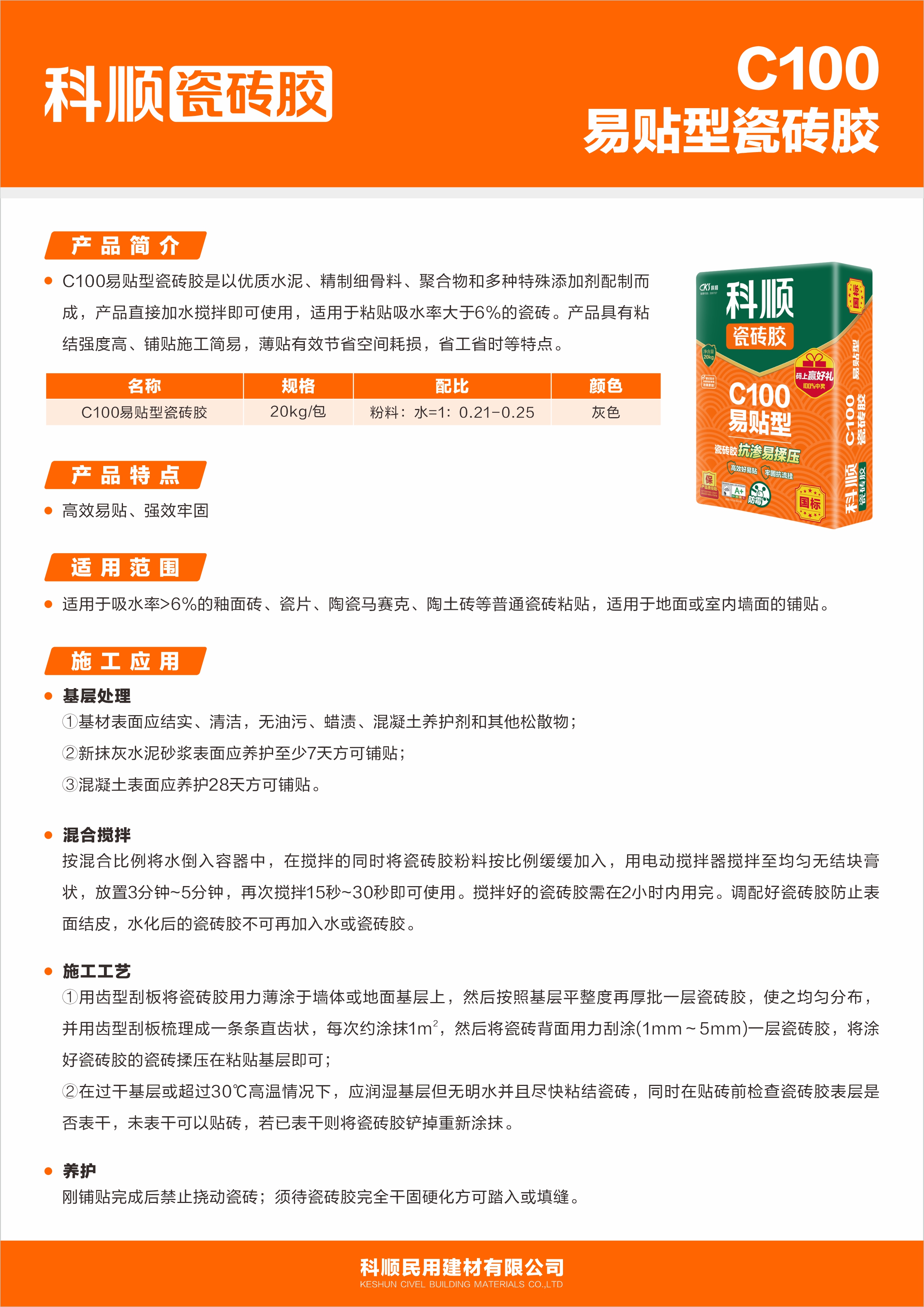 C100易贴型瓷砖胶