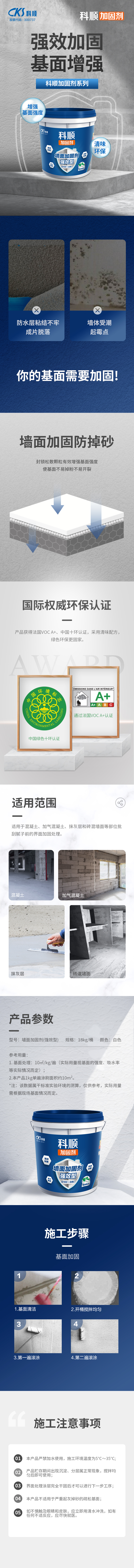 本产品是一种由聚合物乳液和多功能助剂组成的界面处理材料,具有封闭性好无需加水、施工便捷等特点。适用于批刮腻子前对墙面加固处理,能有效提高基层强度及后道材料的附着力。