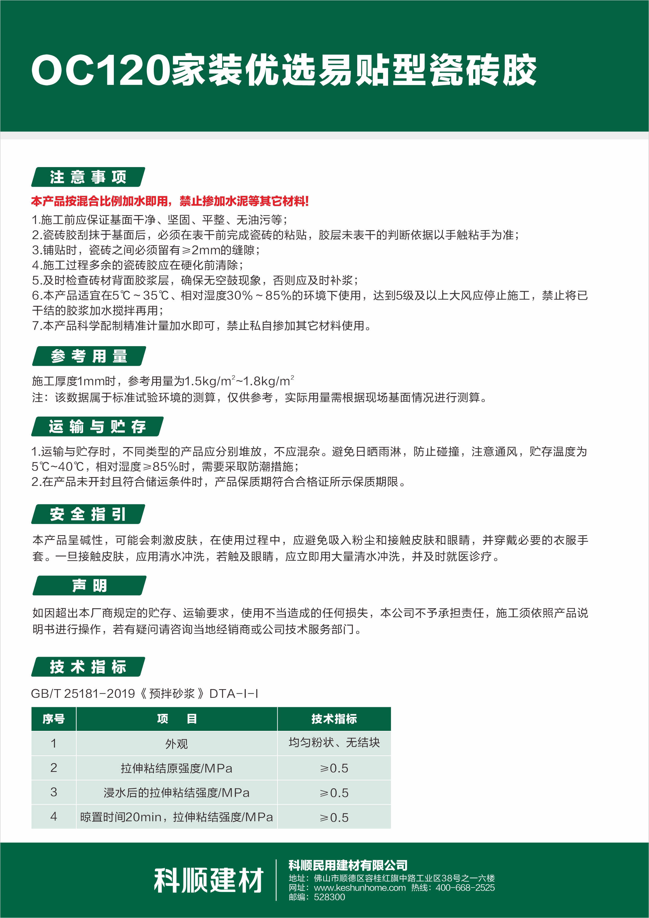 OC120家装优选易贴型瓷砖胶