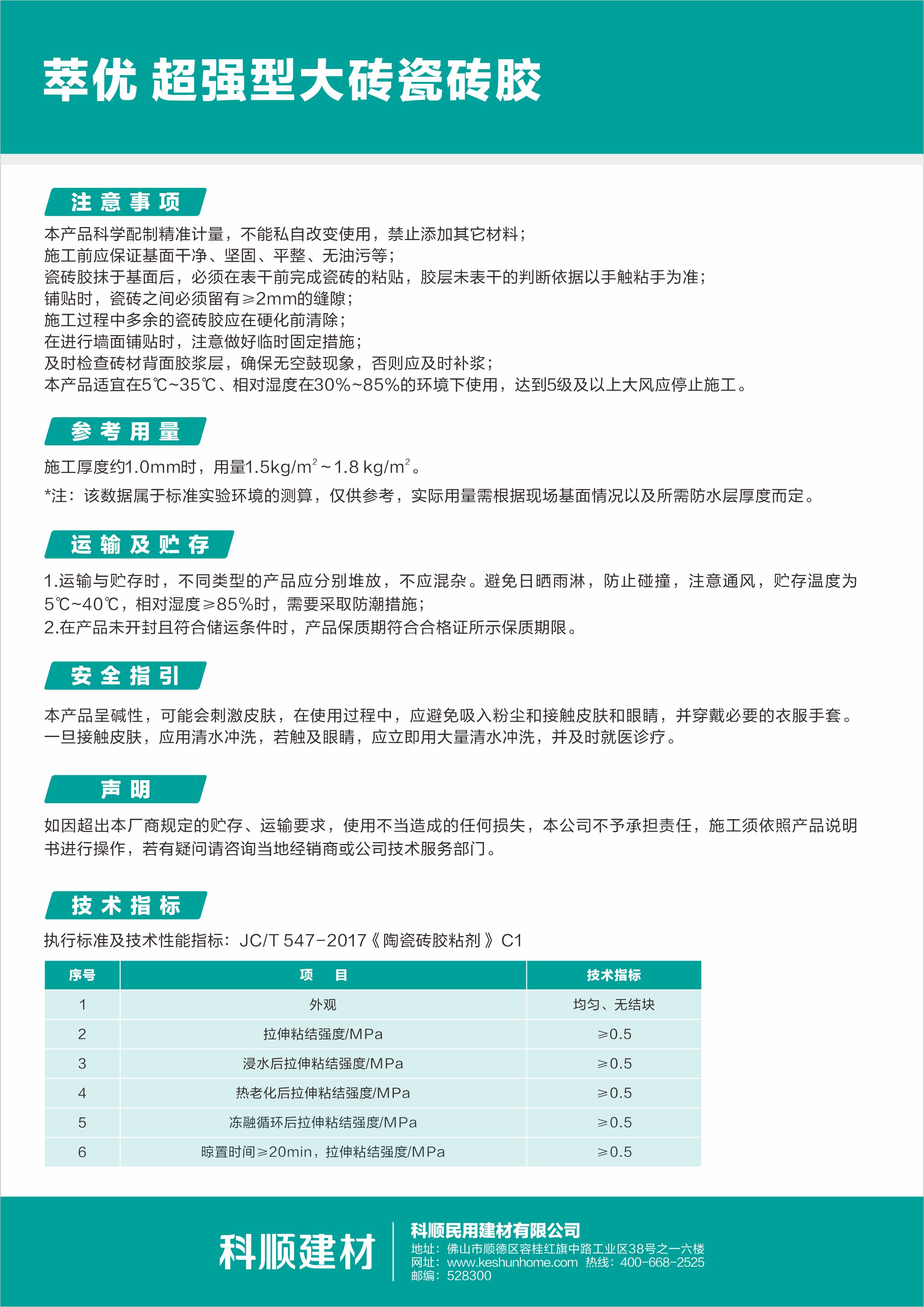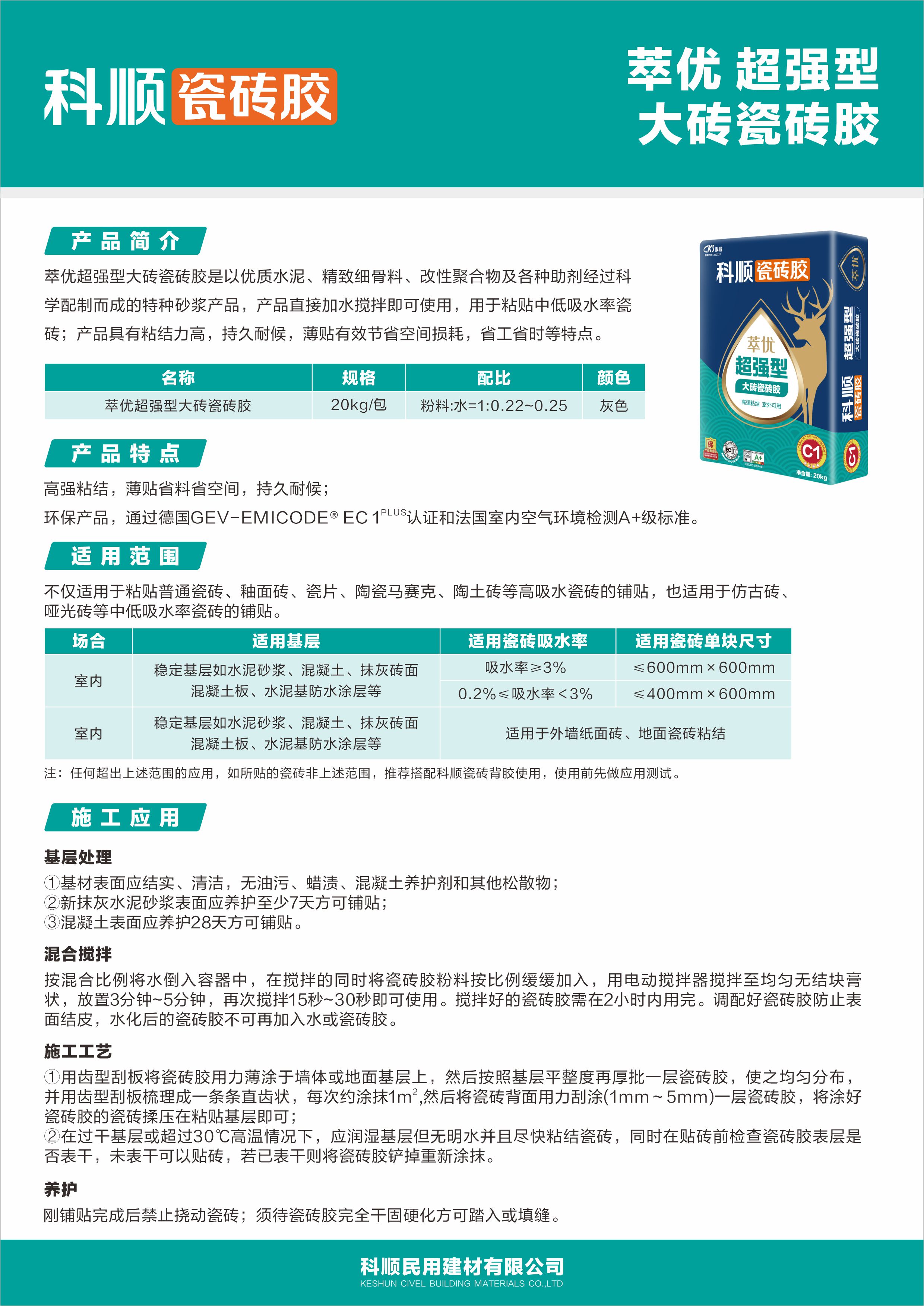 萃优超强型大砖瓷砖胶