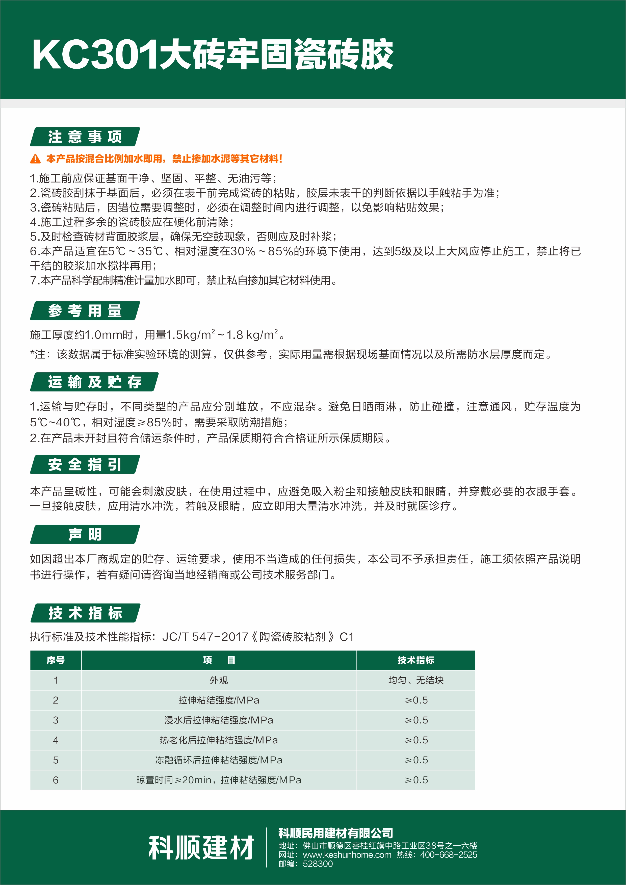 大砖牢固瓷砖胶