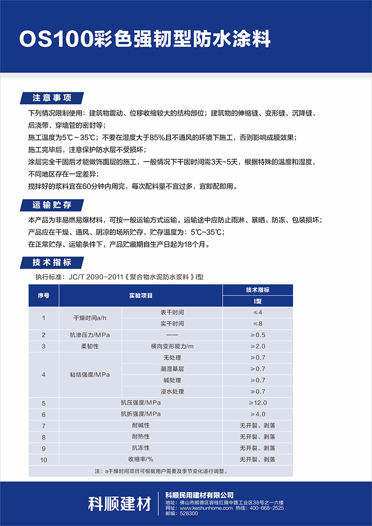 本产品通过法国室内空气环境检测A+认证是由高分子聚合物改性的双组分水泥基防水产品。产品对混凝土毛细孔具有渗透结品作用,施工后在基面形成致密的一体合型防水涂膜,适用于厨房、卫生间、楼层墙壁等防潮防水处理。产品具有粘结强度高,抗渗性能好,易贴砖等特点,防水保护更安心,防水效果更出彩。