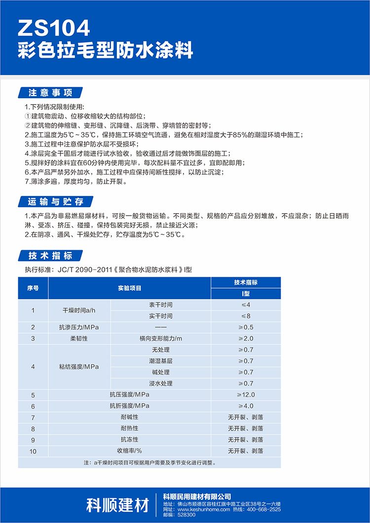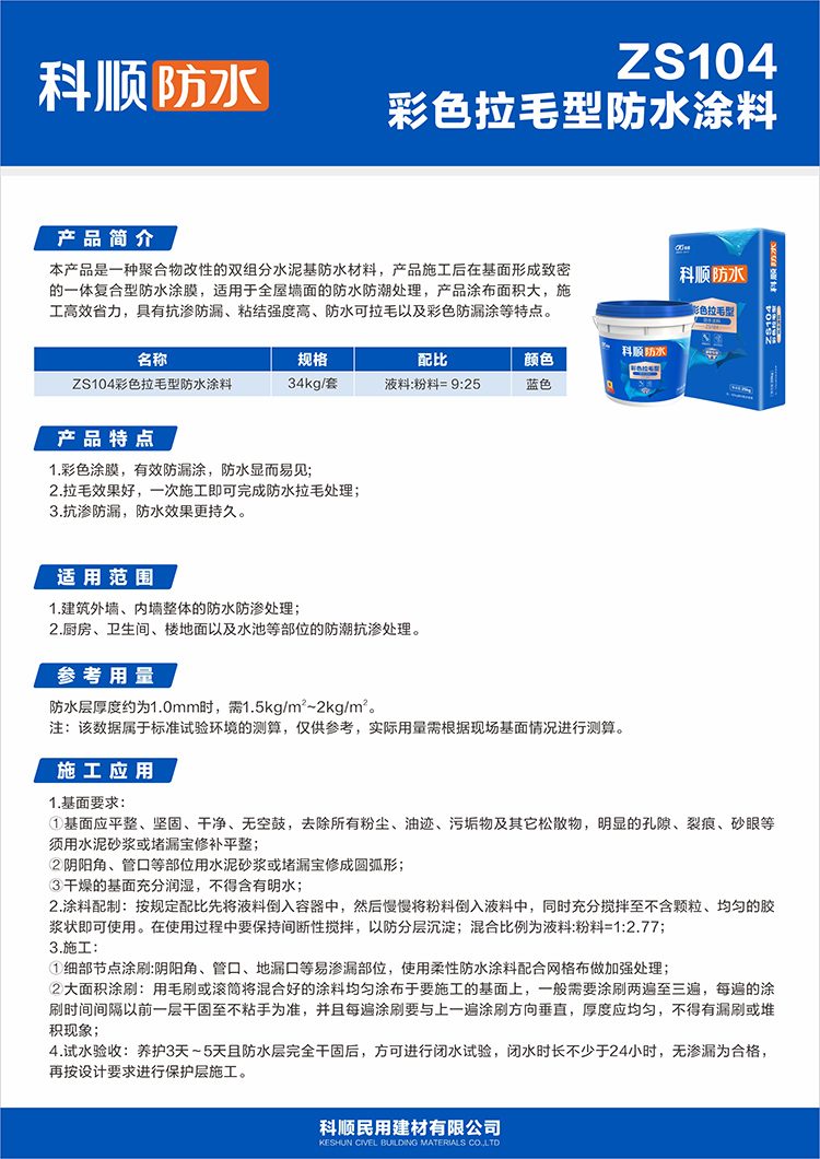 ZS104彩色拉毛型防水涂料