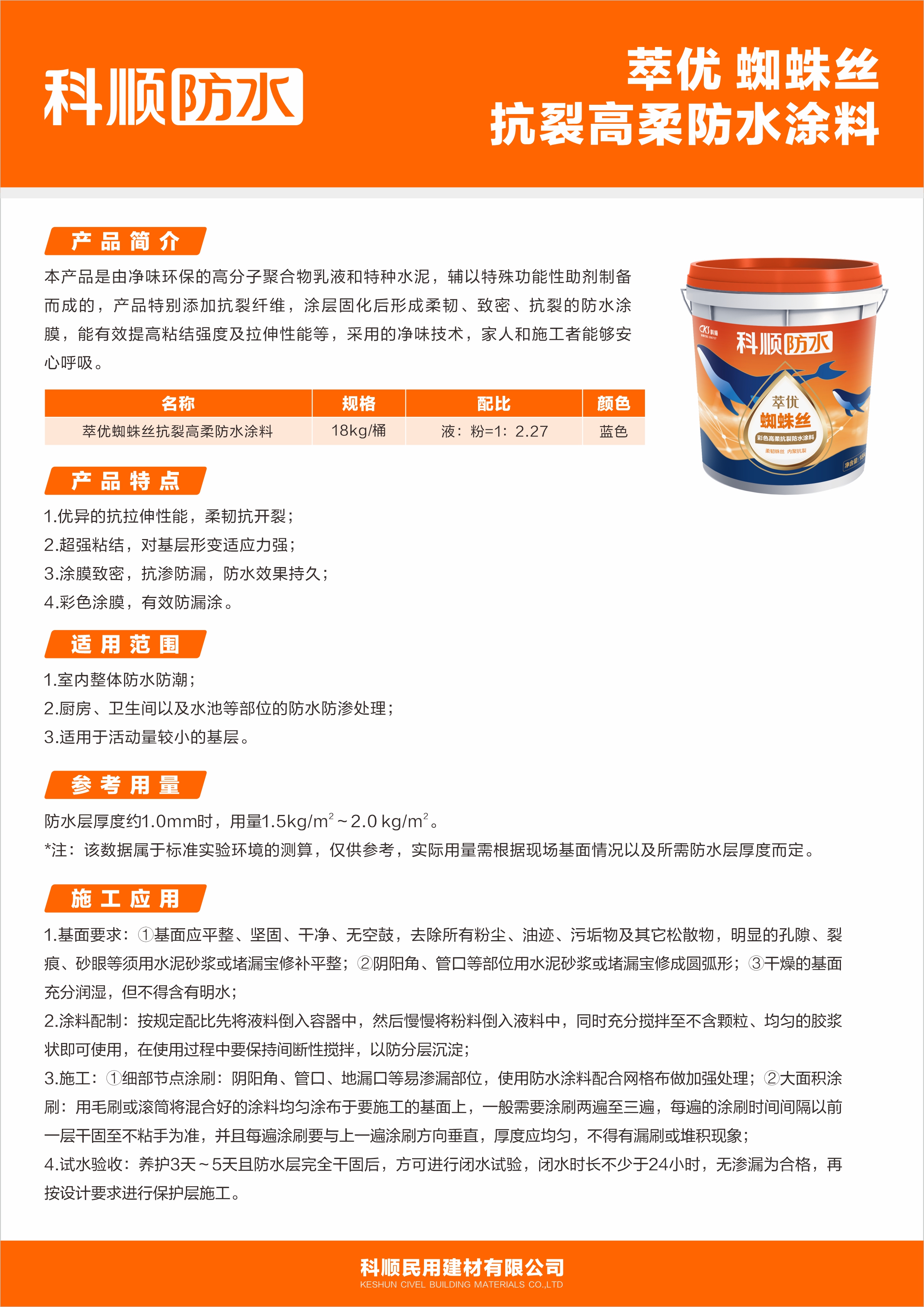 萃优蜘蛛丝彩色高柔抗裂防水涂料