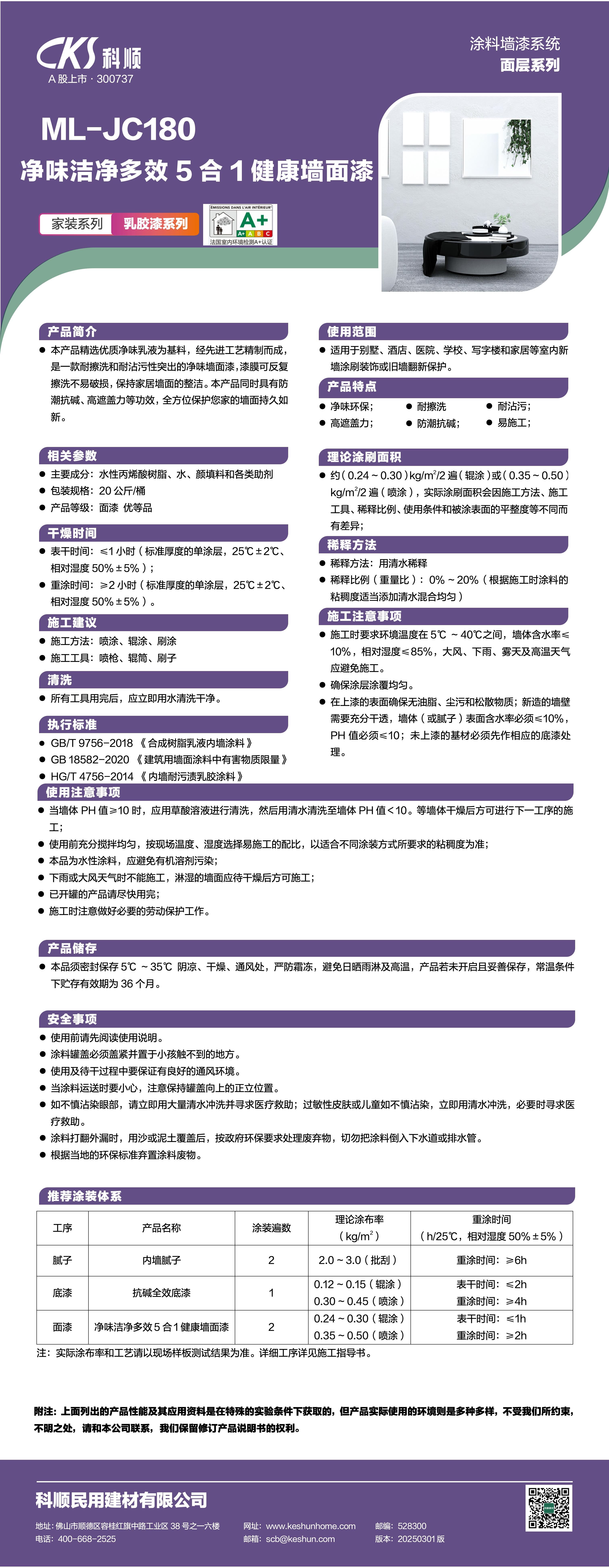 ML-JC180 净味洁净多效5合1健康墙面漆