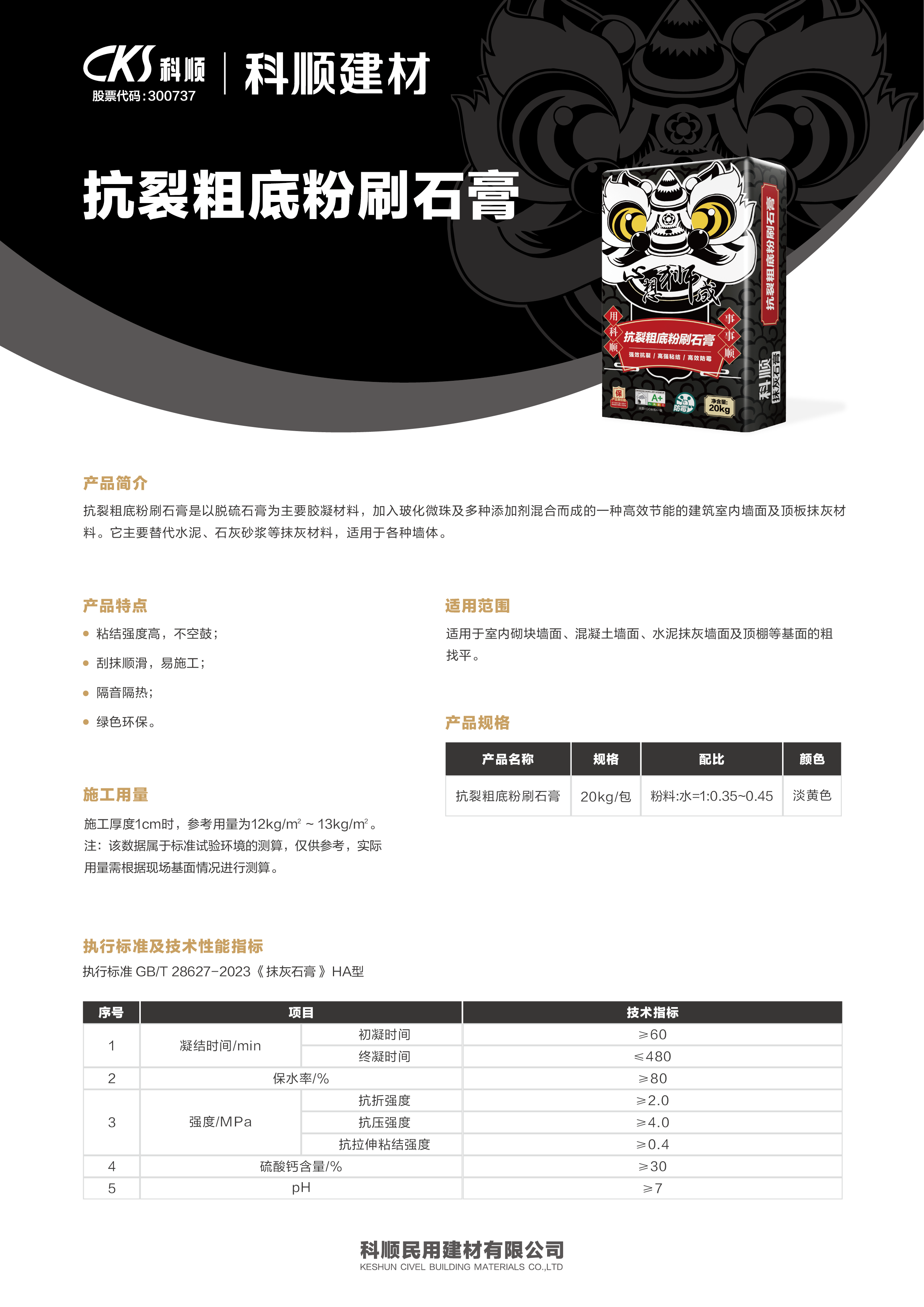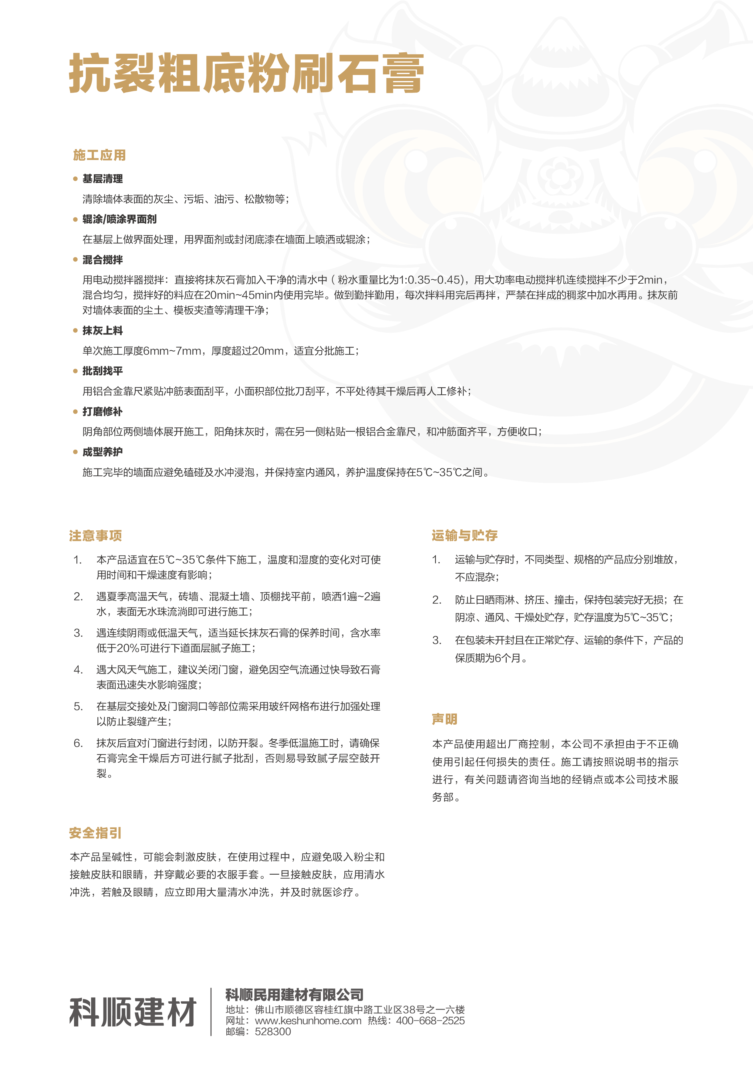 抗裂粗底粉刷石膏是以脱硫石膏为主要胶凝材料,加入玻化微珠及多种添加剂混合而成的一种高效节能的建筑室内墙面及顶板抹灰材料。它主要替代水泥、石灰砂浆等抹灰材料,适用于各种墙体。