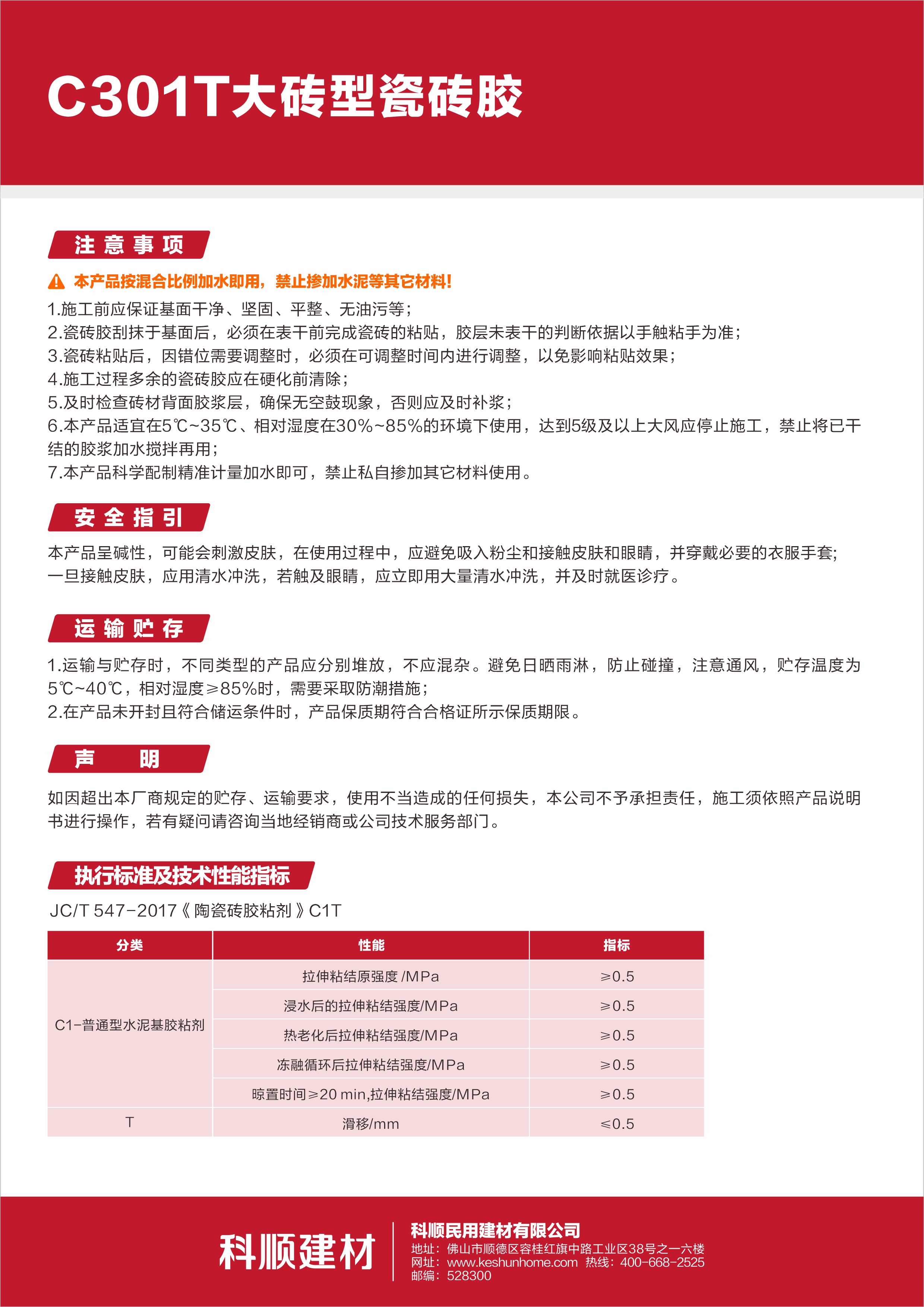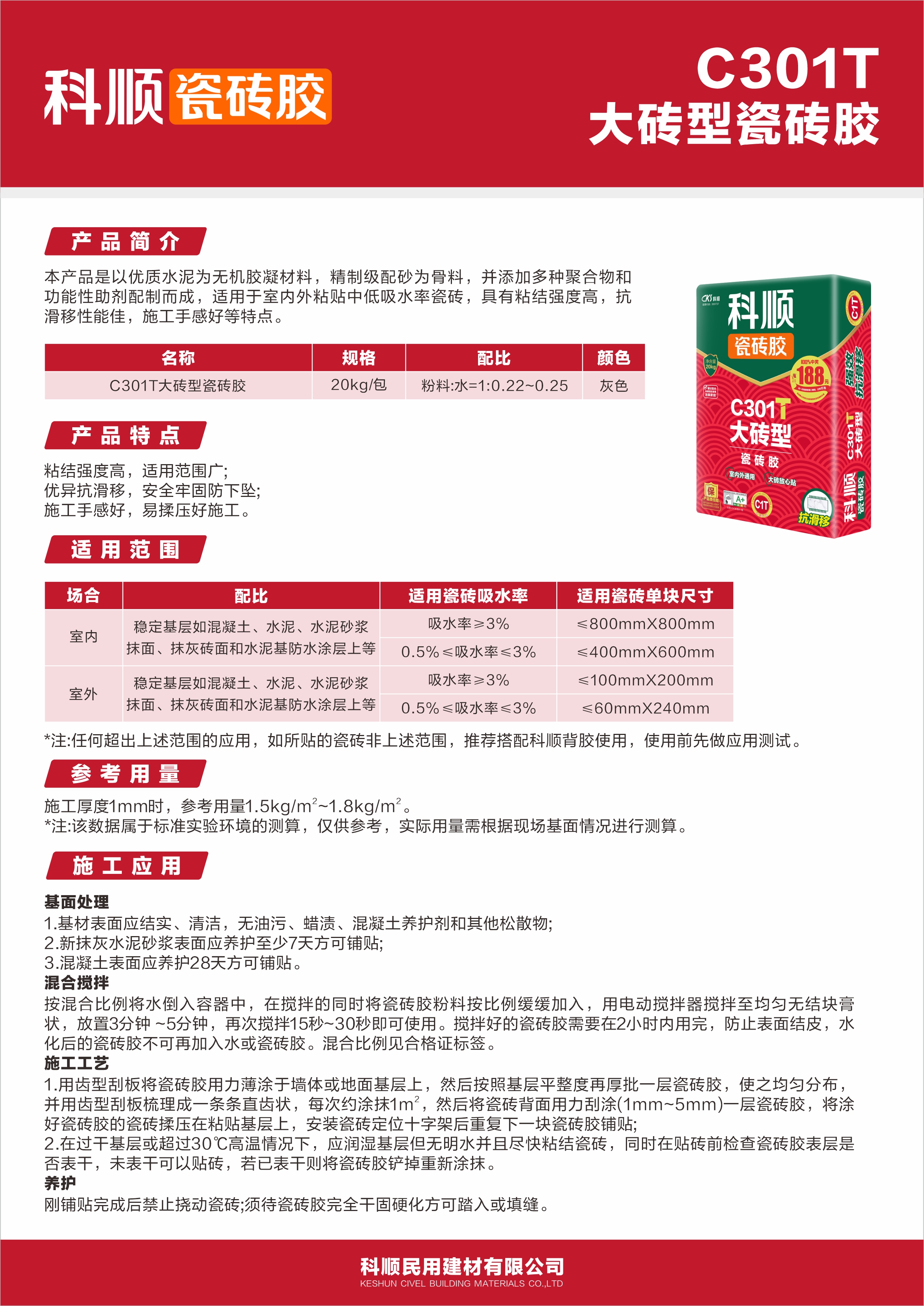 C301T大砖型瓷砖胶